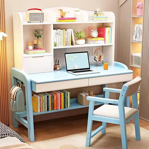 Estantería de escritorio para estudiantes, integrada, de madera maciza entera, uso doméstico para niños, unidades pequeñas con cajones