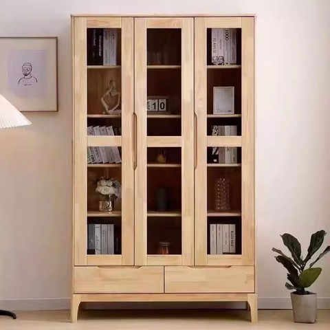 Nordic Minimalist Solid Wood Bookcase Black Arched Glass Doors Nordic Side Cabinet Home Furniture French Vintage Wine Cabinet